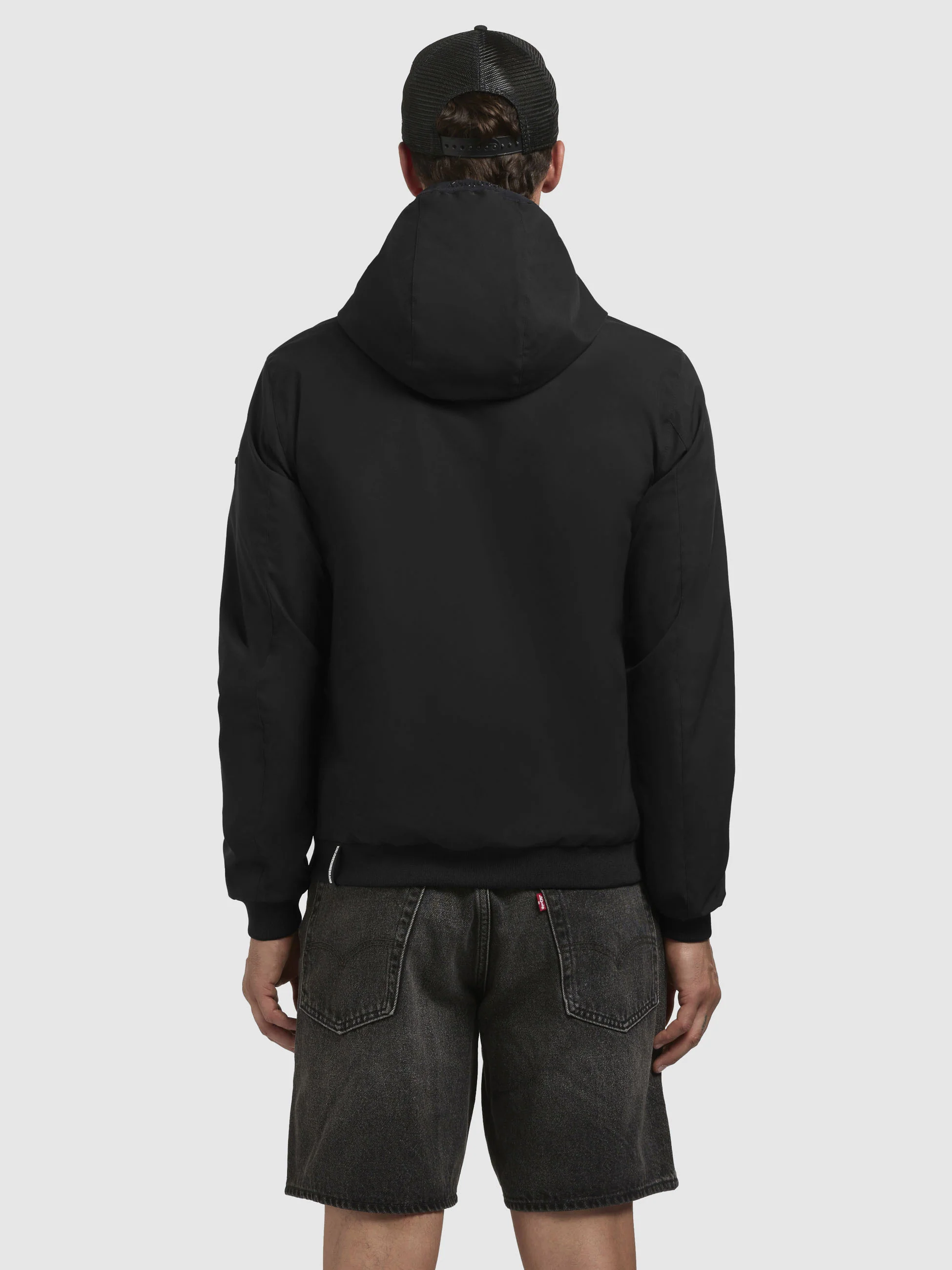 - hoch schließende Kapuze