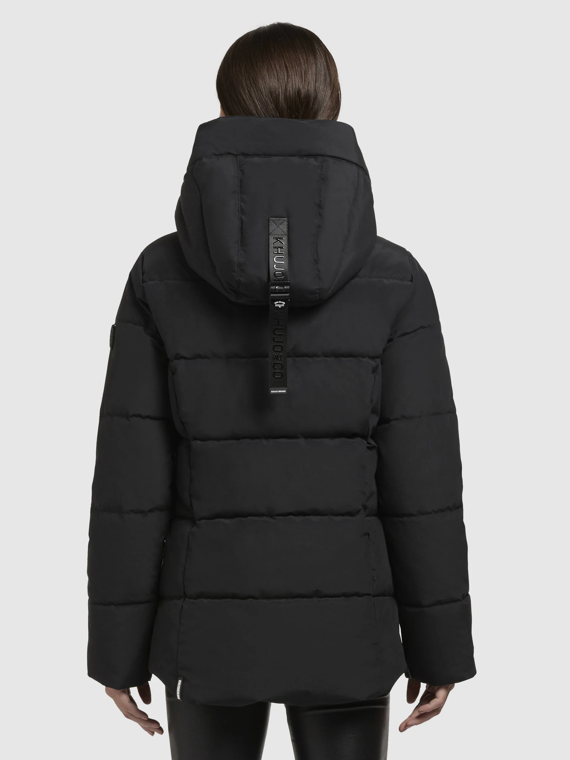- hoch schließende Kapuze mit Kordelzug