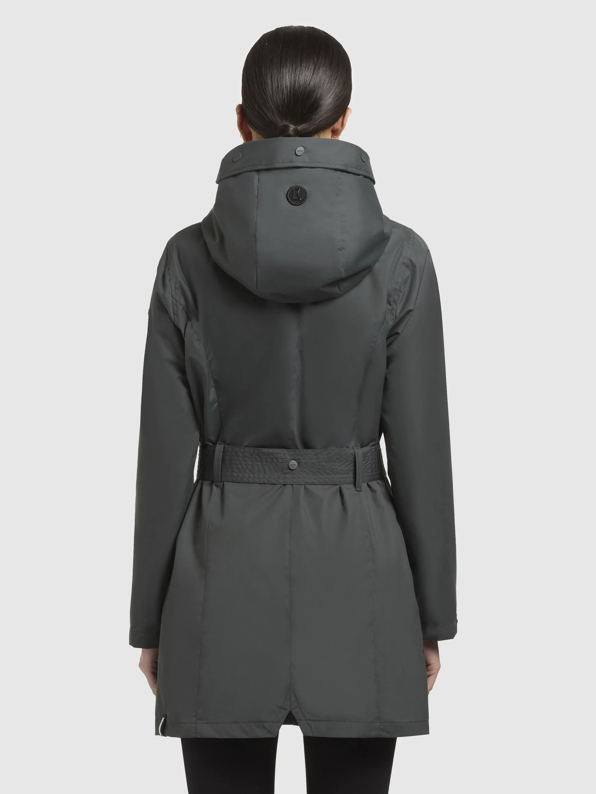 - hoch schließende Kapuze mit Kordelzug