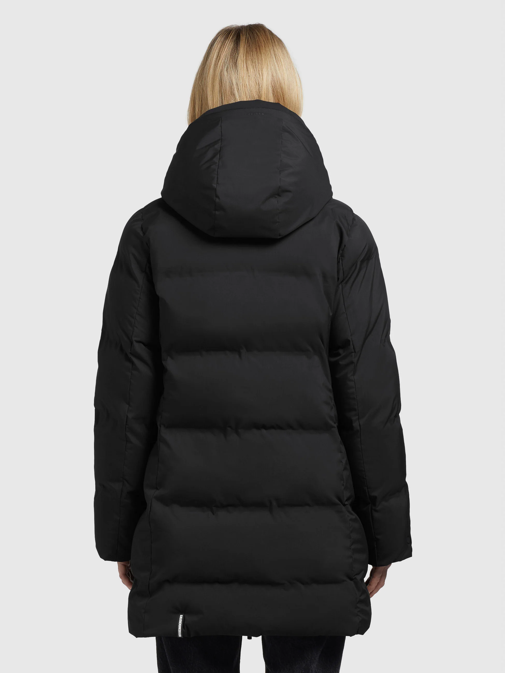 - hoch schließende Kapuze mit Kordelzug